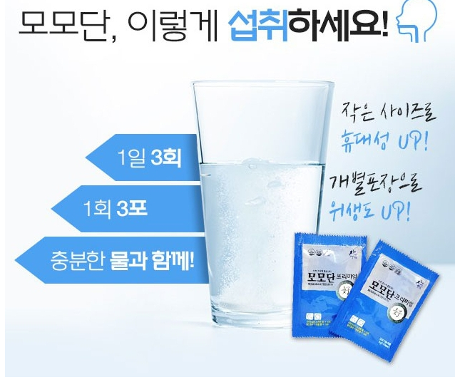 1일 3회 1포씩 섭취하고, 1회 복용 시 1포를 충분한 물과 함께 섭취하시면 됩니다.